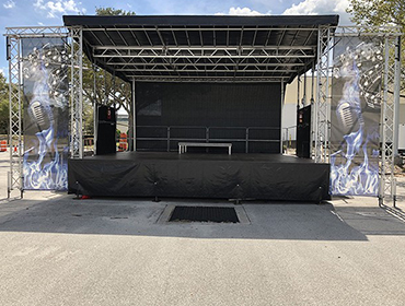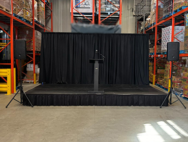 Professional Events rents and installs stages and drapes for all types of events. From a small stage for a single person indoors to a mobile stage for outdoor events, we can provide you with the right size stage.